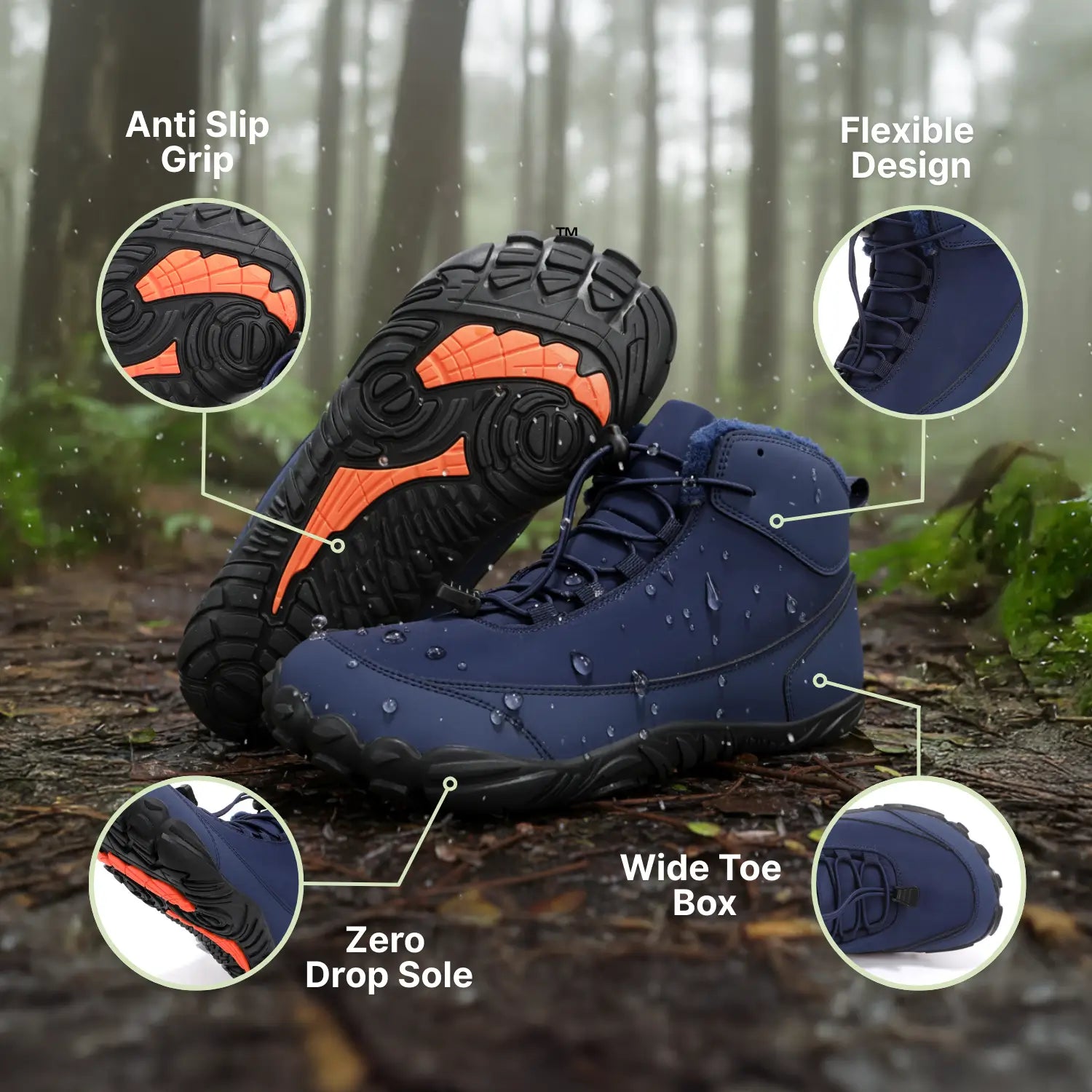 Unlike standard stiff winter boots, this engineered system remains flexible to maintain natural ground feel. You get all the health benefits of barefoot movement, even in freezing, wet conditions.
