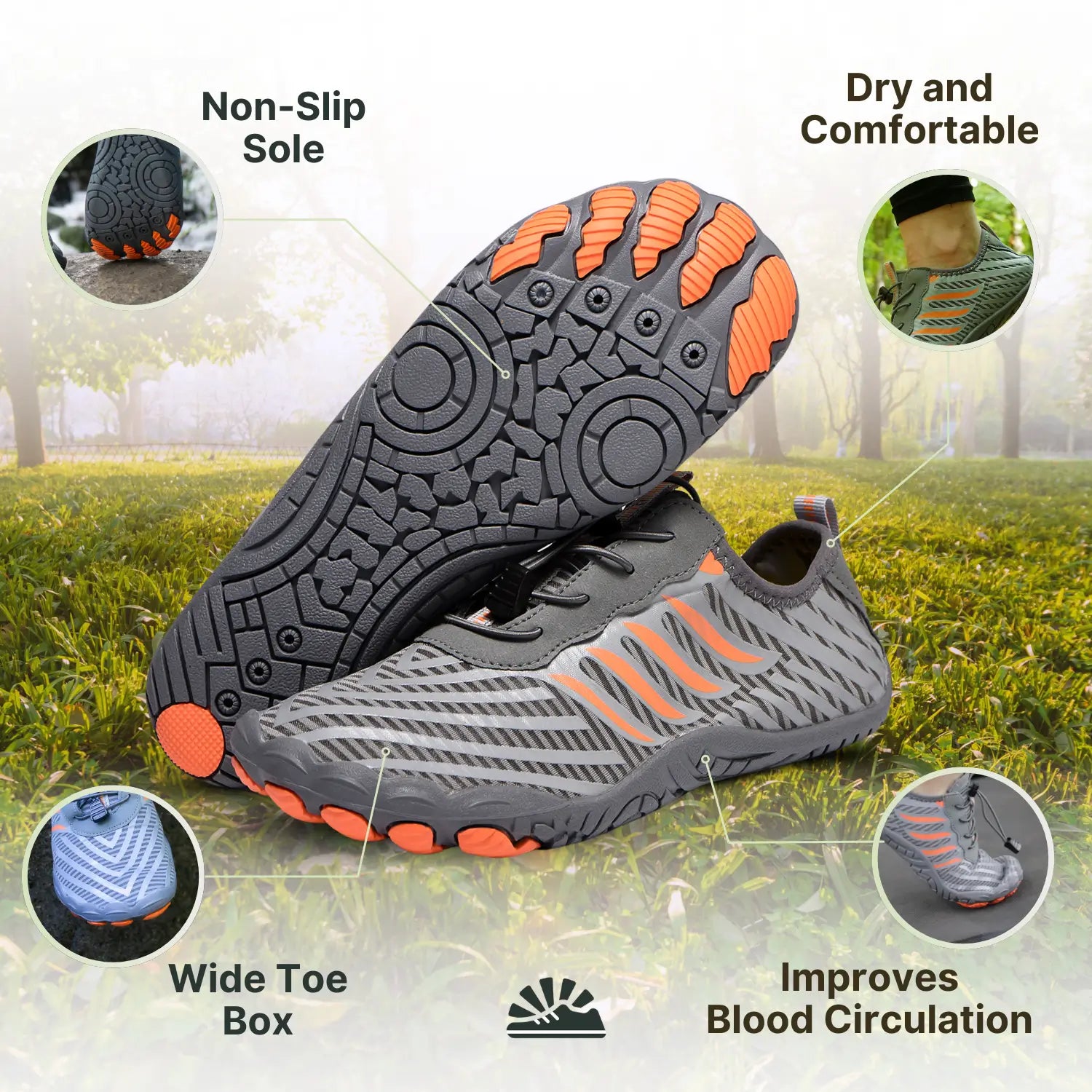 ✓ Boosts Circulation: The barefoot-inspired design stimulates blood flow, reducing fatigue and aiding those with neuropathy.